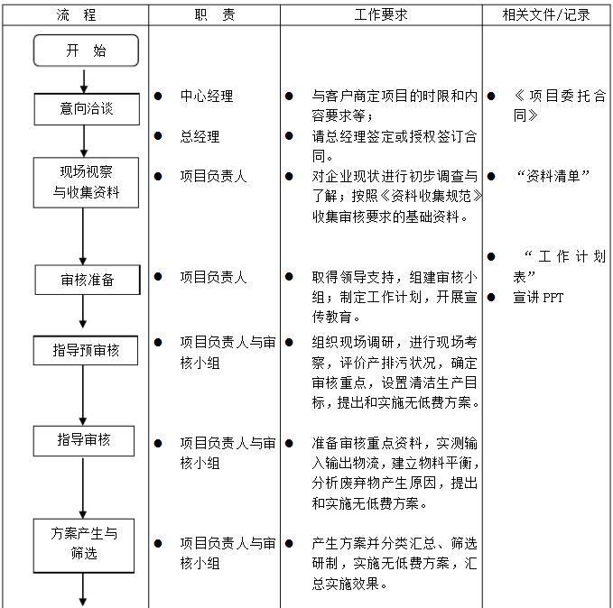 明确规划中心清洁生产审核项目的实施步骤,加强项目管理,确保项目质量进度满足客户要求。